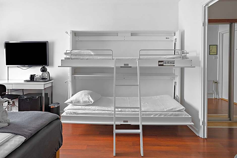 A seating area with a flat-screen TV, a desk and a private bathroom are available in this quadruple room. The unit has 2 beds.